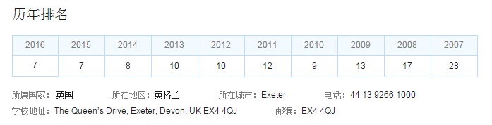 埃克塞特大学共有18个学院,该大学提供学士学位、硕士学位、及博士学位课程。研究生预科课程、本科预科课程、英语强化课程。