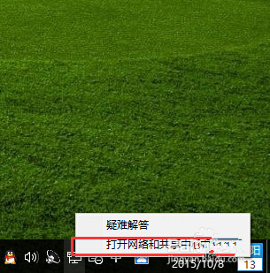 1,在右下角用鼠标右键单击网络图标“小电脑”,在菜单中点击“打开网络和共享中心”。