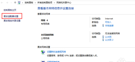 2,在“网络和共享中心”的左上角单击“更改适配器设置”。