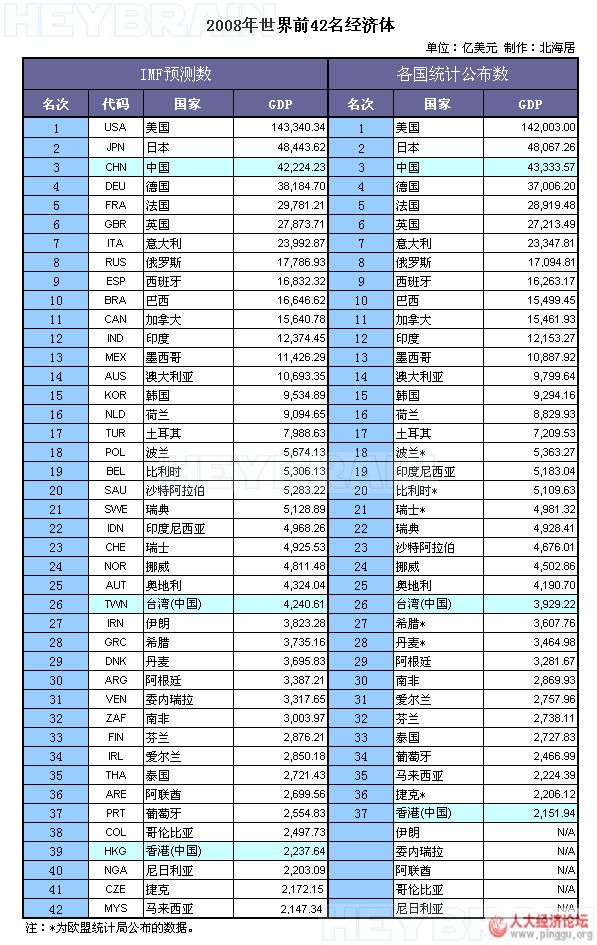 [转帖] 辉煌60年---中国GDP和人均收入世界排名60年变化