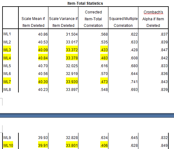 是这样的,我把数据输入以后得出量表整体的α值为0.851,但有四个题项的CITC值<0.5,但是显示每项删除后总体的α值并不会提高,求高手解答我应该怎么做阿?