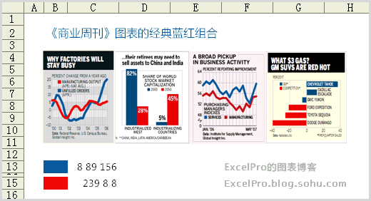 早年的商业周刊上的图表,几乎都使用这个颜色组合,基本成为商业周刊图表的招牌标志了,应该是来源于其VI系统。不过今年来好像很有些变化,更加轻快明亮。