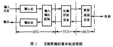 按照CCITTV.24建议,数据通信系统中的终端是由数据终端设备(DTE)、传输控制设备(TCE)和数据通信设备(DCE)等三部分组成,其基本组成框图如图1所示。