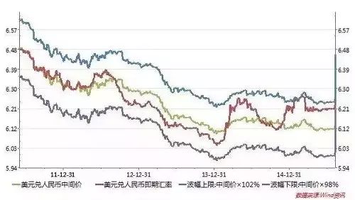 举个例子,假定当日中间价为6.2,由于人民币贬值预期强烈,市场供求推动人民币贬至2%的上限,收盘价为6.2×(1+2%)=6.324,那么次日的中间价即在6.324附近,简单起见我们假设次日中间价就是6.324,假定人民币贬值预期仍然强烈,再次贬到波幅区间上限,收盘价则为6.324×(1+2%)=6.4505。反之,如果市场认为人民币汇率已处于均衡水平,那么收盘价和中间价都会稳定下来。