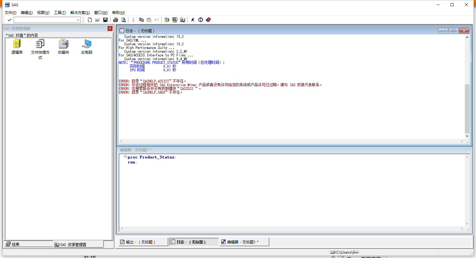 ERROR: 目录“SASHELP.ASSIST”不存在。 ERROR: 目录“SASHELP.SQC”不存在。