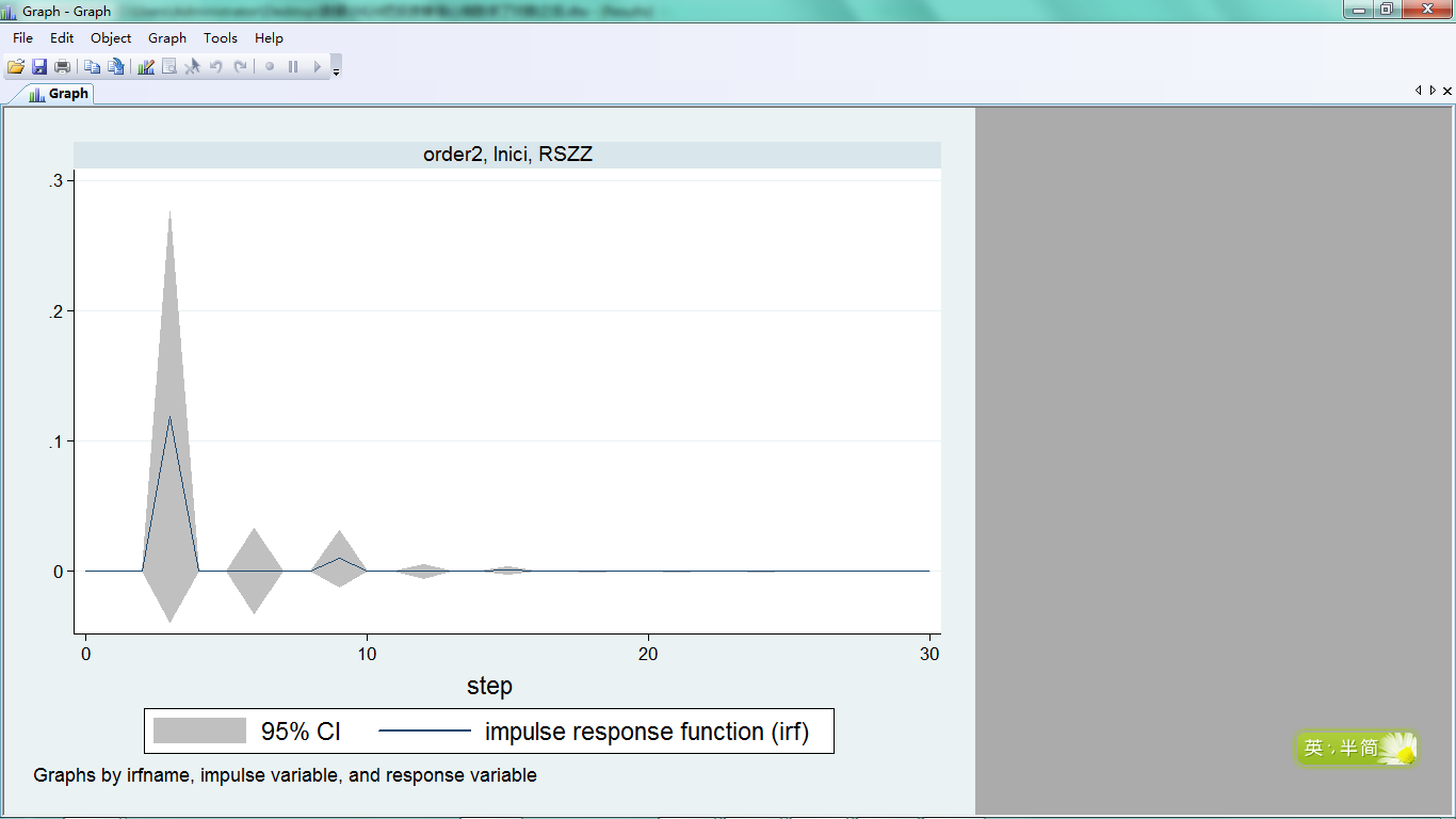 然后做脉冲响应函数,画出来的图就成这样了。为什么不是连续的?可不可以解释为有周期性?实在是很困惑,因为别的图都不是这样的,不知道是不是我的数据或是操作错误。还有三天交毕业论文,急求各位大神的帮助,不胜感激!
