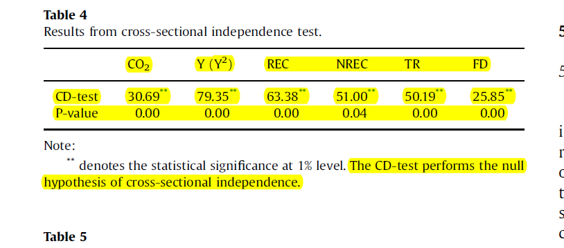 要求对于面板数据的每一个变量进行pesaran's CD test