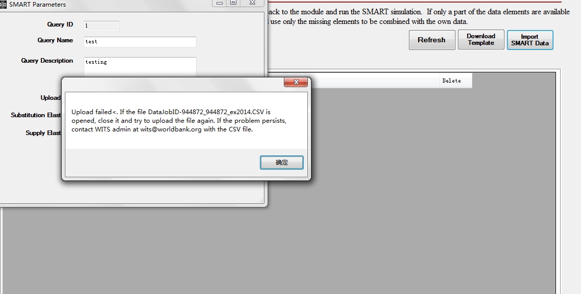 不知道能不能看清 我手敲一遍:Upload failed<. if the file XXX(文件名) is opened, close it and try to upload it again. If the problem persists, contact WITS admin at ...(邮箱)