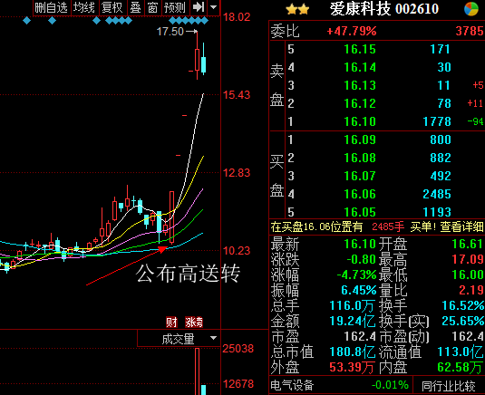 联创股份昨日晚间披露2015年年报,推利润分配预案10转27派2元,按理说这对于股价构成重大利好,而且还有机构评论称该消息将大概率促使股价上涨。要知道爱康科技上周五午间公布十转三十的中报高送转预案后,股价连续收出四个涨停。然而,今天联创股份高开2个点不到后大幅走低,盘中封上跌停板。相信很多靠消息炒股的朋友会被骗进来。