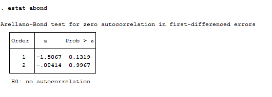 请问动态GMM做序列相关性检验时,检验结果无数值是什么原因呢?