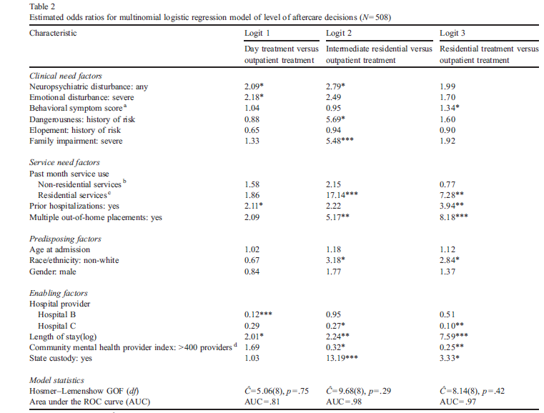 Need or availability? Modeling aftercare decisions for psychiatrically hospitalized adolescents