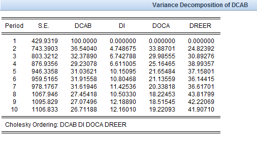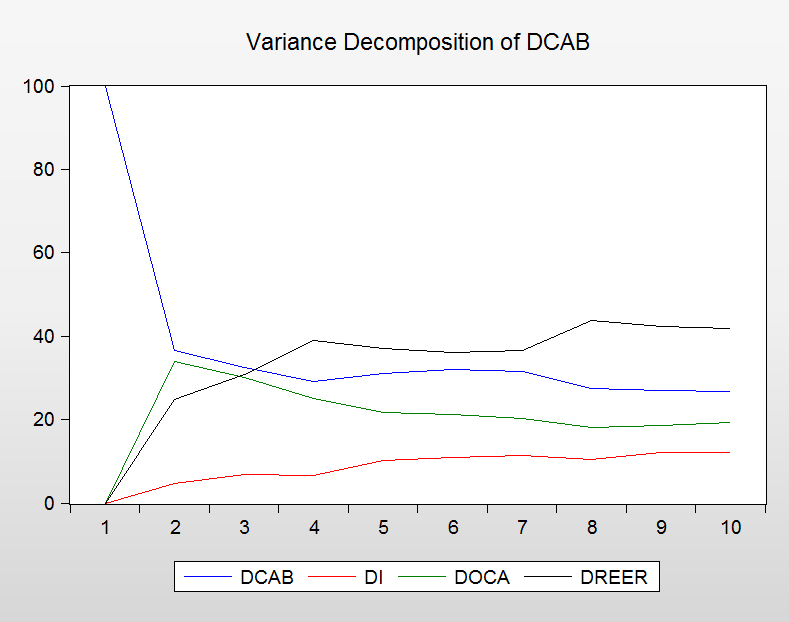 EVIEWS中关于脉冲响应函数和方差分解图的解释