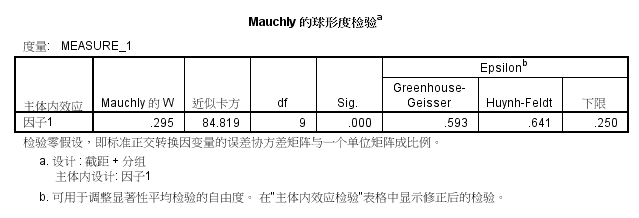 如图1,repeat measurement ANOVA结果中,Mauchly 的球形度检验 p <0.001
