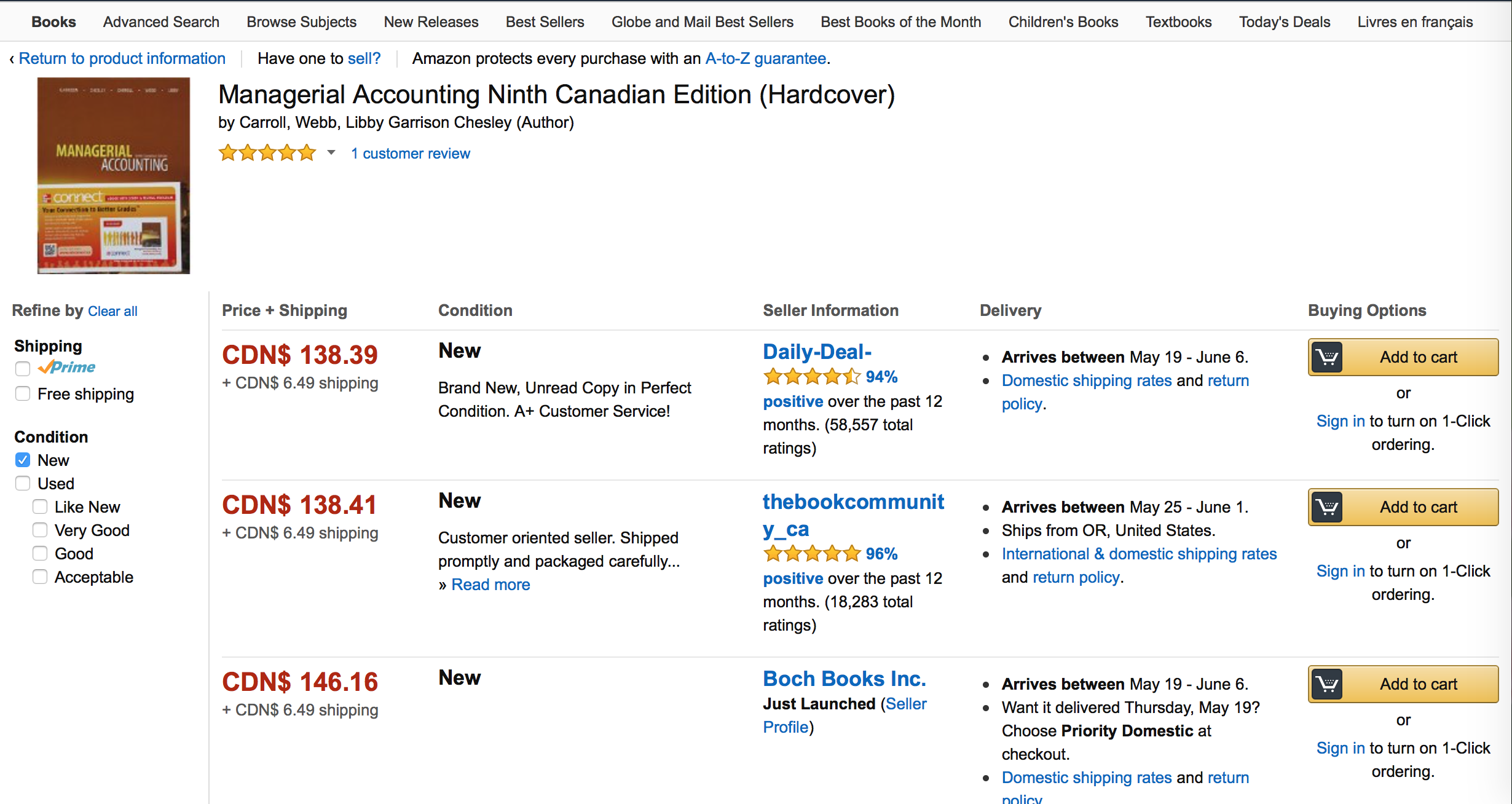 Managerial Accounting Ninth Canadian Edition Hardcover – 2012