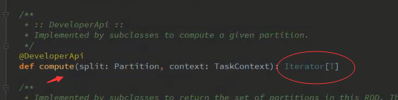 四、compute为什么所有RDD操作返回都是迭代器?好处是让所有框架无缝集成,结果流处理,机器学习都可以互调,无论是机器学习操作sql,还是sql操作机器学习,还是流处理操作图计算,还是流处理操作sql,大家都是基于RDD,我才不管你是什么东西,只关心你是RDD。第2点,又有可以调用子类的具体东西,所以是不是流处理可以直接调用机器学习的具体功能去训练。因为有this.type(),所以可以通过运行时runtime,来具体把实际的实例赋值给RDD,你转过来就可以去操作它,这样使用了接口,还能调用接口下面的子类。