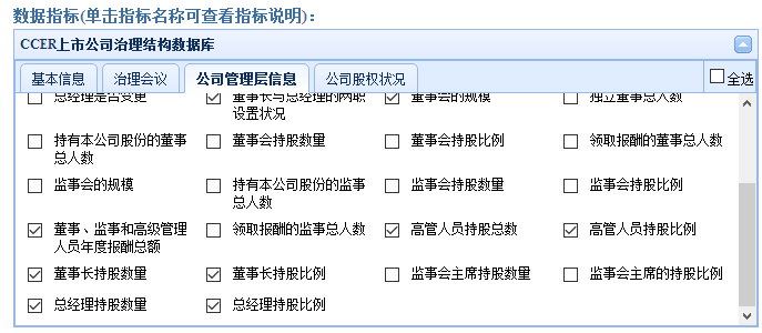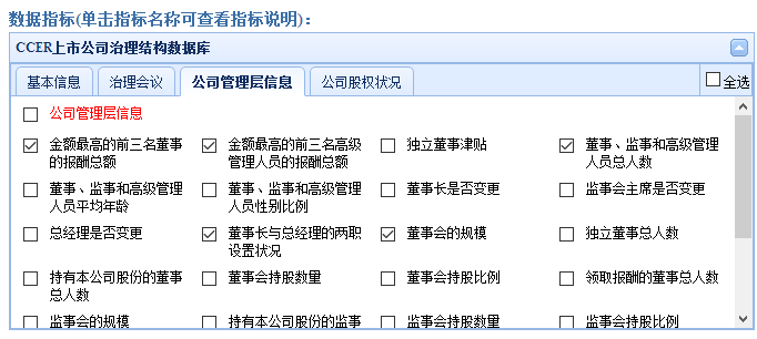 (2)CCER资本市场-----专题研究------治理结构数据库-----公司管理层信息(具体指标如图2、图3)
