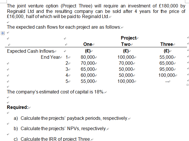 求这个问题的答案 payback period