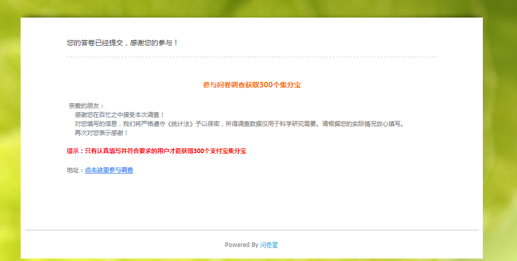 问卷完成提交后截图