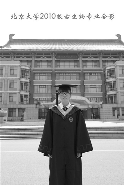 两年前,穿着白色衬衣、顶着黑色学士帽的薛逸凡似乎还没来得及笑一下,四年的大学时光就在相机的咔嚓声中画上了句号。镜头前严肃拘谨的薛逸凡没有想到,就是这张一个人的“北大2010级古生物专业合影”,一个人的大学毕业照让她几天之内成为热门人物。