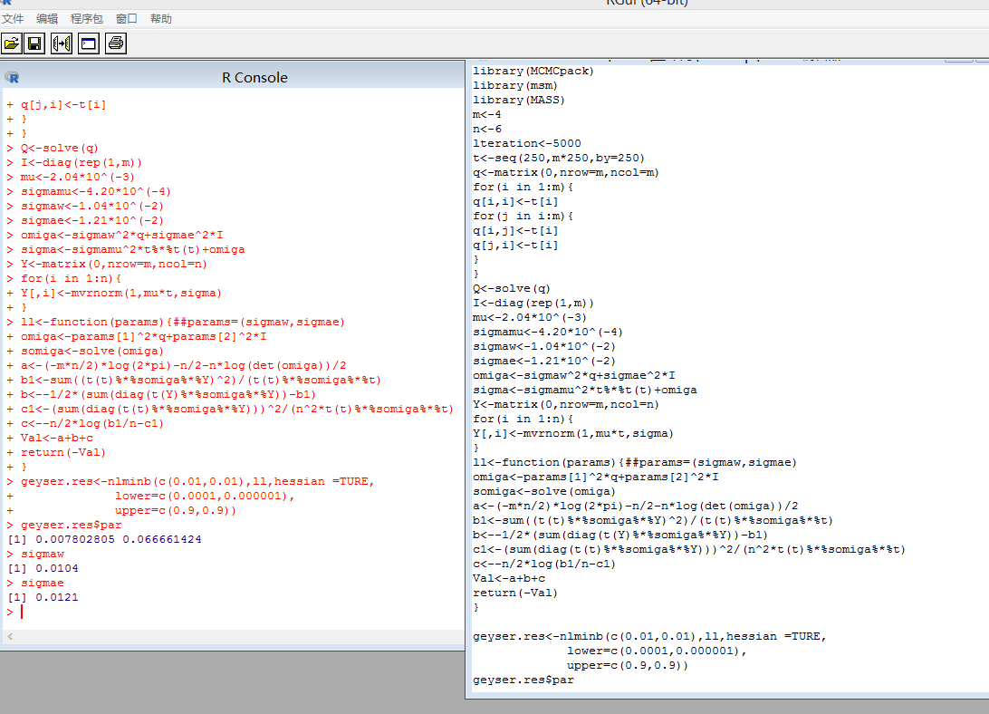 佳佳梦可微 发表于 2016-5-23 18:27 它是个多维正态分布,里面有四个参数,算不出来,但是现在的似然函数的参数只有两个,因为把另外两个剃掉 ...
