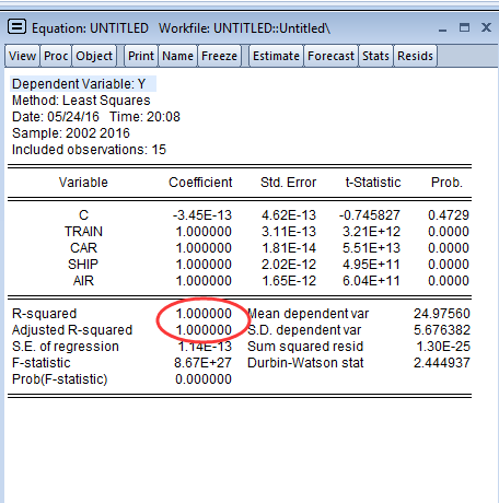 R方一般越接近1越好 不过为何你的系数也都是1?
