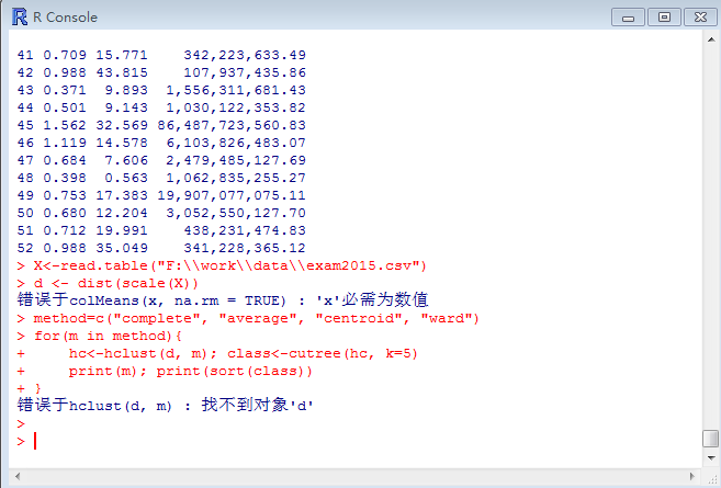 bbslover 发表于 2016-5-27 20:51 apply(X, 2, as.numeric) 试试看 好像你read.table读入的数值是字符型? 查看一下。如果是就先要转化为nu ...