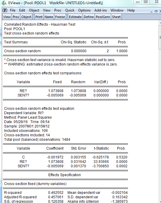 其中rm是沪深300超额,rf为无风险收益,sent为市场共有情绪,不随个体变化。 检验结果如下,好捉急啊,我该如何是好