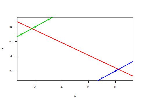jiagangw 发表于 2016-6-5 16:34 由上述附件可以看出,用全部数据拟合的(红色的)回归线可以不在用部分数据(蓝色和绿色)分别拟合的回归线 ...