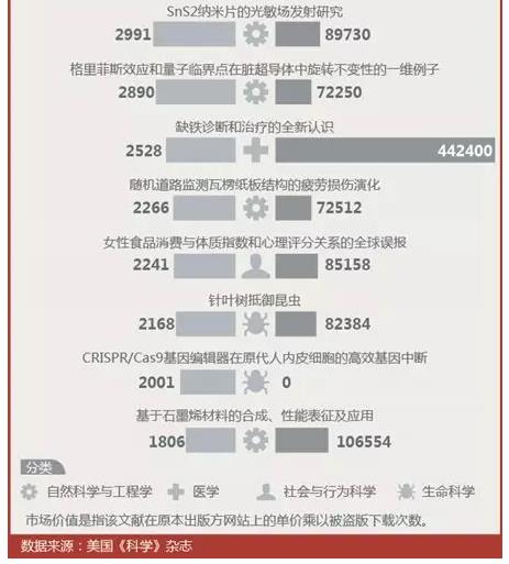 根据上述数据,排名前100的文献总共被下载了87039次,如果每一次下载都按照出版商的定价付费的话,那么其总价值将高达2701255美金。而这些还远不及所有2800万条数据累计给出版方带来的损失。