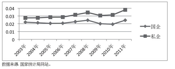 (一)国有企业相对民营企业占有了过多的信贷资源,效率却相对低下,存在着金融资源的 错配,不利于产业结构升级;