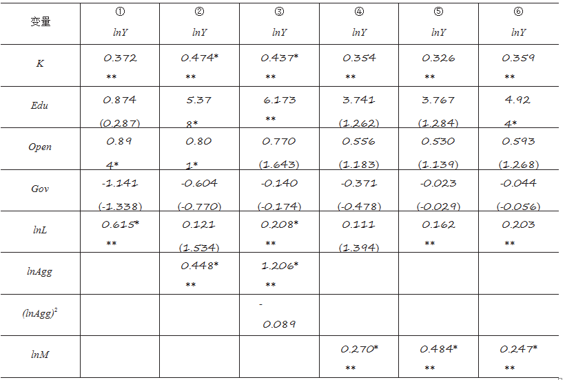 1. 整体产业集聚对城市经济增长的影响。