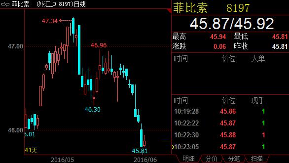 北京时间10点35分,美元兑菲律宾比索报45.92/87。