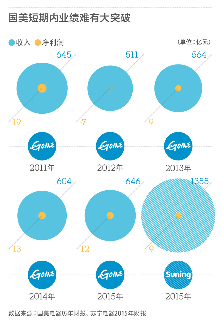 这也是国美如今显得处境尴尬的原因。过去,家电领域很多模式都是国美开创出来的,比如与生产商直接对接的供销模式,现在,它却更像是一个“追赶者”。即便它也找到了如亚马逊、日本第二大家电零售巨头BIC CAMERA等合作者,但与苏宁和阿里巴巴的联盟相比,既没有先发优势,也显现不出更强的合纵连横效应。