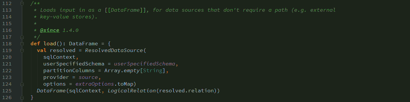 DataFrameReader的load方法是生成ResolvedDataSource对象,再使用该对象生成并返回一个DataFrame对象。