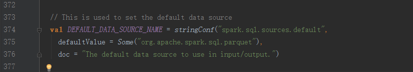conf是SQLConf对象。看SQLConf. defaultDataSourceName的定义: