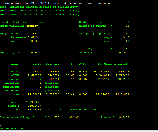 xddlovejiao1314 发表于 2016-6-22 16:49 你用的是固定效应模型,这个方法只能估计随时间而变的变量的参数。而你选择的这两个地理指标基本上是不 ...