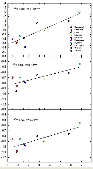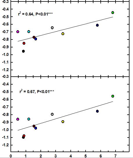 plot(mydata$GDP,mydata$Protein_g,xlim=c(0,8),ylim=c(-4,-1.5),
