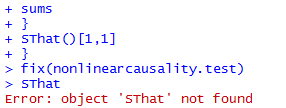 jewel1919bb 发表于 2016-7-1 19:03 做非线性格兰杰因果测试中需要算数test statistic,但是总是说出现error,要怎么解决啊?