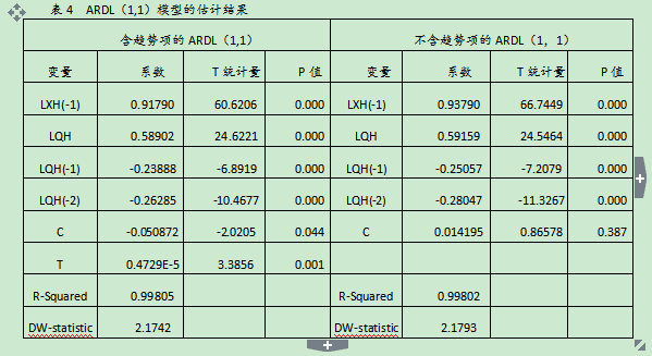ARDL模型的长期效应和短期效应值