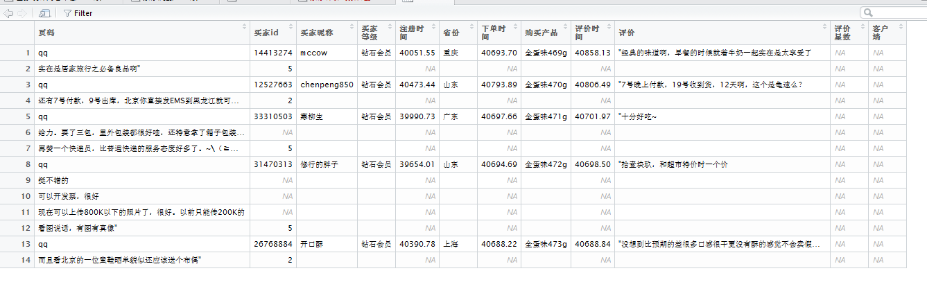 马甲1号 发表于 2016-6-30 17:06 估计评论字段里面有\n导致的。不过我用read.csv读取完全正常。也许你得改改quote参数。