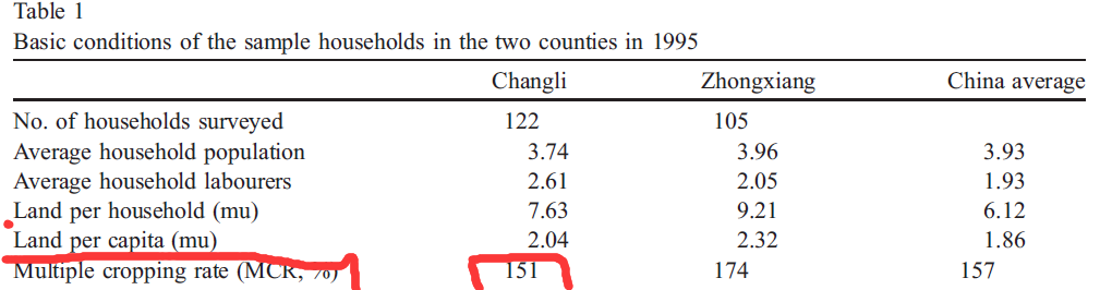 请问,这上面的复种指数是如何计算的,怎么能达到150多呢?