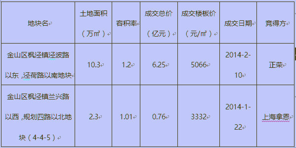 近年枫泾宅地历史成交情况
