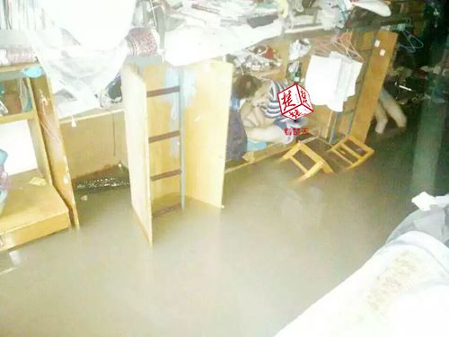 一开始,周同学以为渍水不会太深。不想雨下个不停,宿舍的渍水越来越深,眼看椅子都要被淹了,周同学干脆蹲在椅子上面,继续复习。直到水快将书桌淹了,他才撤到了宿舍楼的二楼。