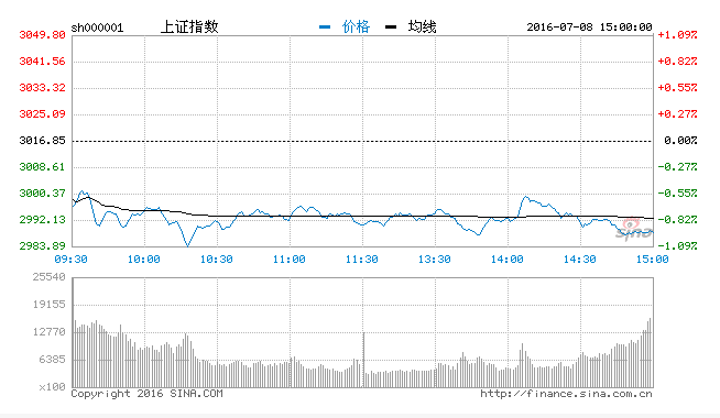 『股市智慧』沪指缩量跌0.95%再失3000点 两市逾1500股下挫
