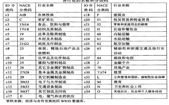 这2篇文献有wiod行业名称及对应的代码