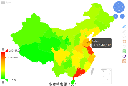 直观了解关键指标在全国的分布状况(交易额,交易量,客单价等)