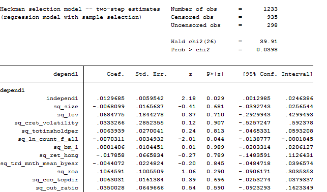 1、如何利用outreg2,将Heckman两阶段的Wald chisq输出到EXCEL中?