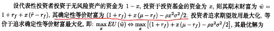请问下图画红线部分(确定性等价财富)是怎么计算出来的?
