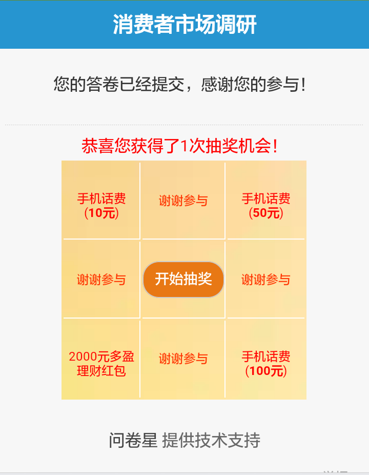 问卷已完成,请查收!