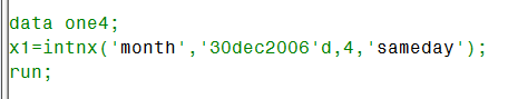 wwang111 发表于 2016-7-20 15:03 不是很清楚你不明白的点在哪; 如果是不理解intnx函数,可以参考一下SAS HELP,基本的意思就是'30dec200 ...